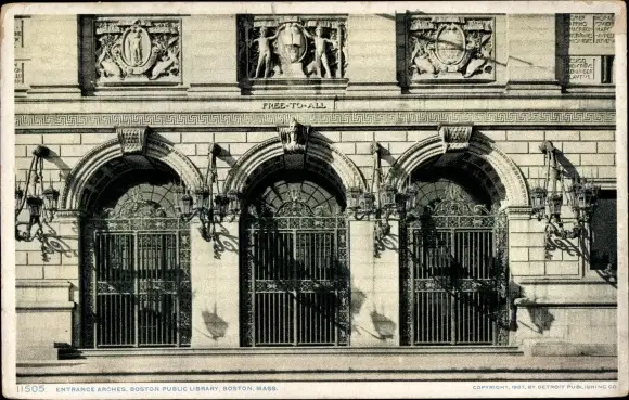 Ak Boston Massachusetts USA, Eingangsbögen, Boston Public Library