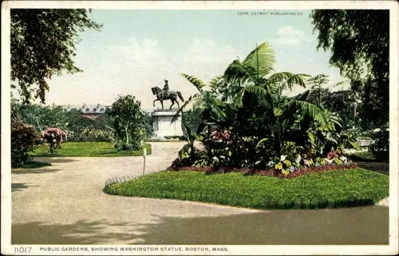 Ak Boston Massachusetts USA, öffentliche Gärten, Washington-Statue
