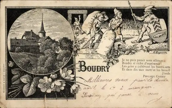 Ak Boudry Kanton Neuenburg, Kirche, Zwerge, Wappen