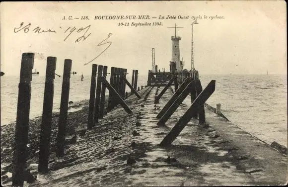 Ak Boulogne sur Mer Pas de Calais, La Jetee Ouest apres le cyclone, 1903