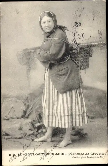 Ak Boulogne sur Mer Pas de Calais, Pecheuse de Crevettes