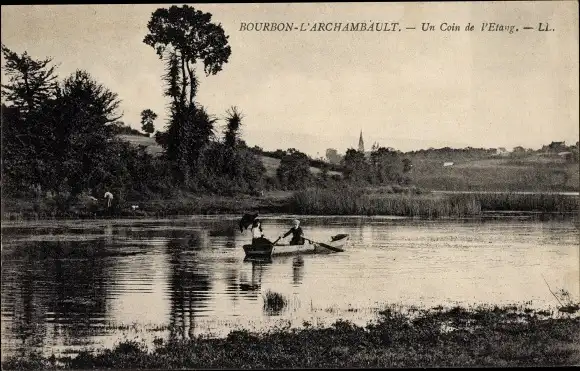 Ak Bourbon l'Archambault Allier, Eine Ecke des Teiches