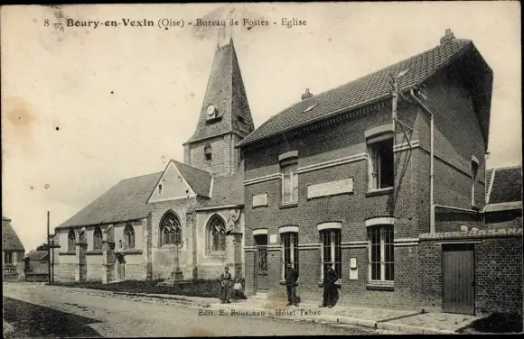 Ak Boury en Vexin Oise, Postamt, Kirche