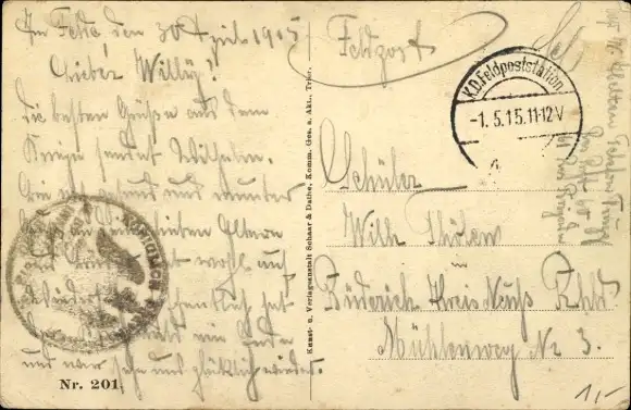 Zustand, siehe Scan, gelaufen, 1915 - ca 14 cm X 9 cm