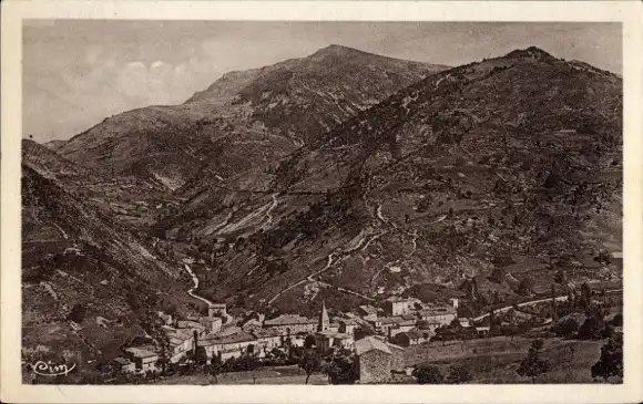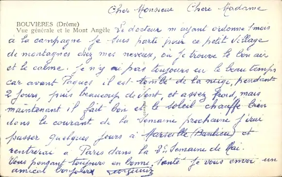 Ak Bouvières Drôme, vue generale et le Mont Angele