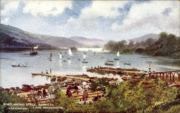 Ak Bowness on Windermere, Cumbria, England, Lake Windermere, Bootsanlegestelle