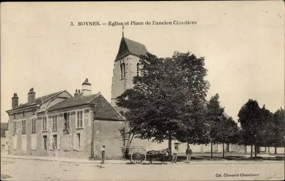 Ak Boynes Loiret, Eglise et Place de l'ancien Cimetiere