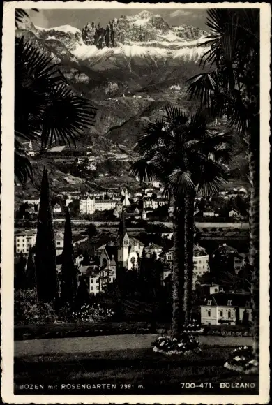 Ak Bozen Bolzano Südtirol, Ortsansicht mit Rosengarten