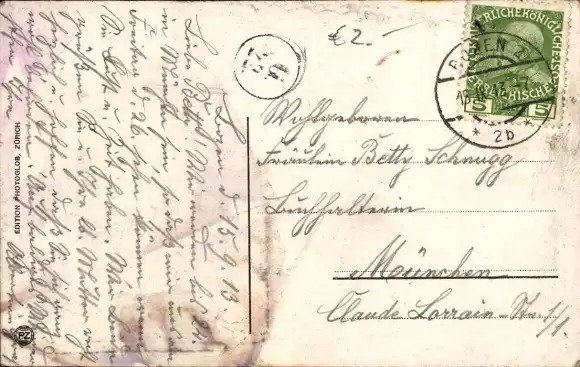 Zustand, siehe Scan, gelaufen, 1913 - ca 14 cm X 9 cm