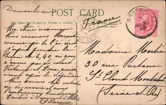 Zustand, siehe Scan, gelaufen, 1908 - ca 14 cm X 9 cm