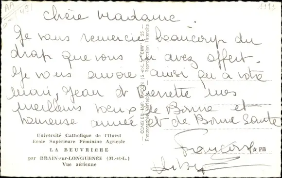 Ak Brain sur Longuenée Maine et Loire, Le Beuvriere, Vue aerienne, Universite Catholique