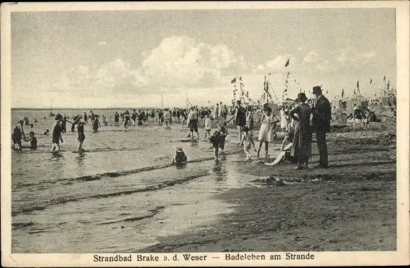 Ak Brake an der Unterweser in Oldenburg, Badeleben am Strand