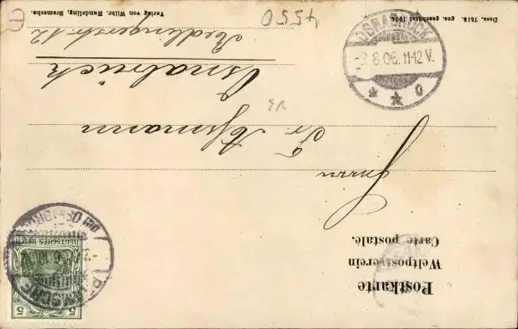 Zustand, siehe Scan, gelaufen, 1906 - ca 14 cm X 9 cm