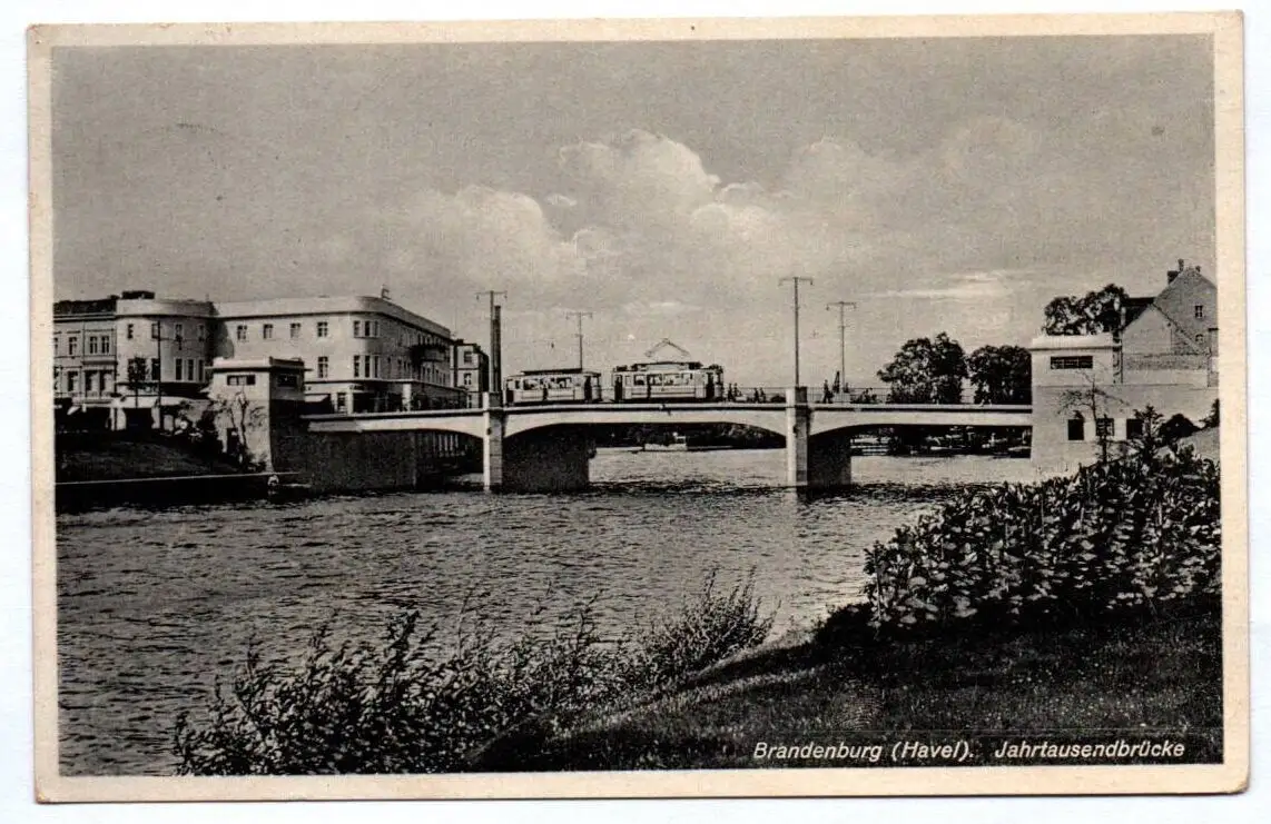 Ak Brandenburg Havel Jahrtausendbrücke Strassenbahn 1938