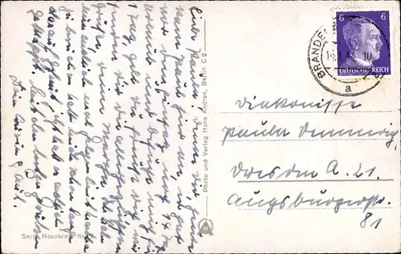 Zustand, siehe Scan, gelaufen, 1944 - ca 14 cm X 9 cm
