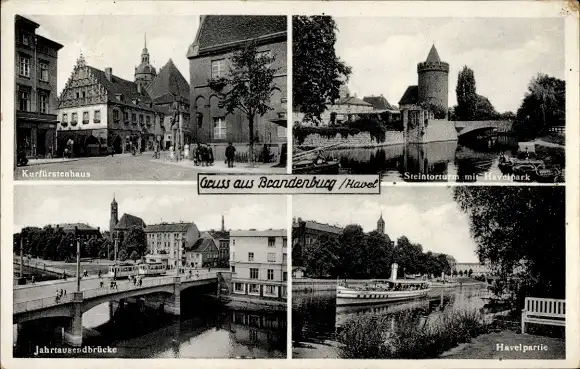 Ak Brandenburg an der Havel, Kurfürstenhaus, Steintorturm, Jahrtausendbrücke