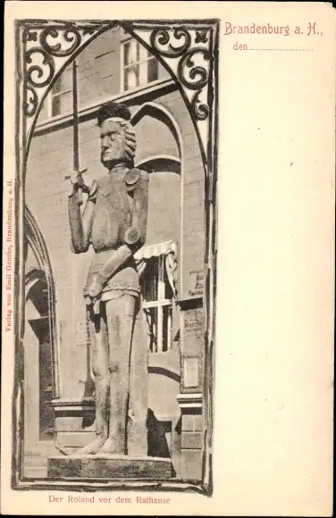 Ak Brandenburg an der Havel, Roland vor dem Rathaus