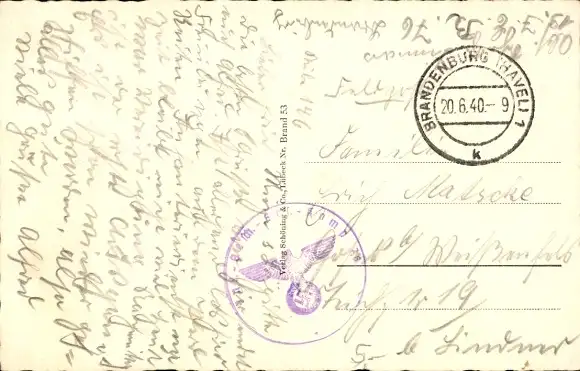 Zustand, siehe Scan, gelaufen, 1940 - ca 14 cm X 9 cm