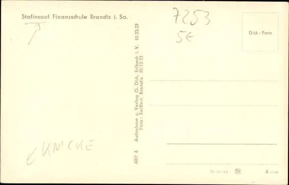 Ak Brandis in Sachsen, Stalinsaal Finanzschule