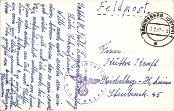 Zustand, siehe Scan, gelaufen, 1941 - ca 14 cm X 9 cm