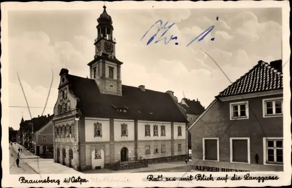 Ak Braniewo Braunsberg Ostpreußen, Rathaus, Langgasse