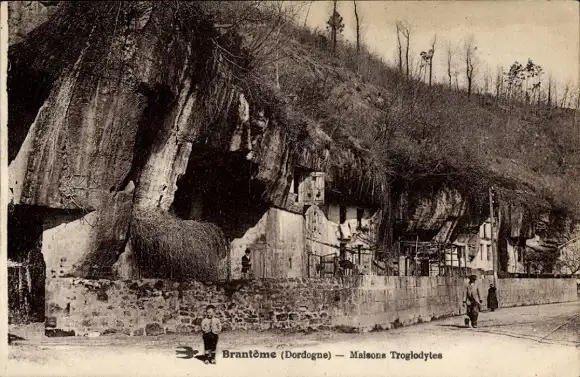 Ak Brantôme Dordogne, Maisons Troglodytes
