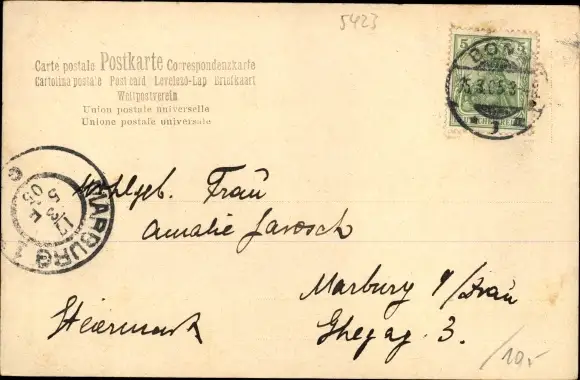 Zustand, siehe Scan, gelaufen, 1905 - ca 14 cm X 9 cm