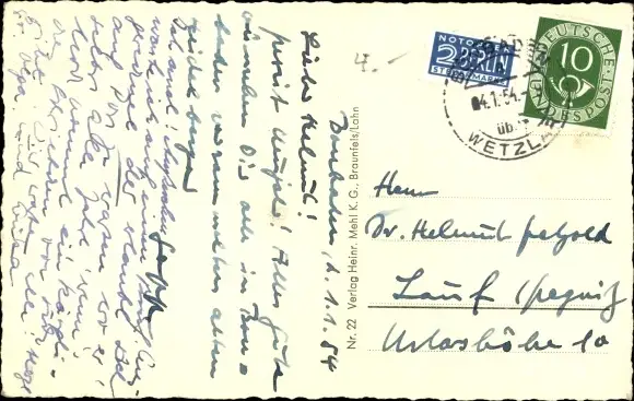 Zustand, siehe Scan, gelaufen, 1954 - ca 9 cm X 14 cm
