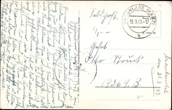 Zustand, siehe Scan, gelaufen, 1943 - ca 14 cm X 9 cm