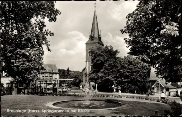 Ak Braunlage im Oberharz, Springbrunnen, Kirche