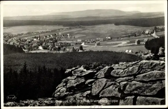 Ak Braunlage im Oberharz, Totalansicht, Große Wurmbergklippe