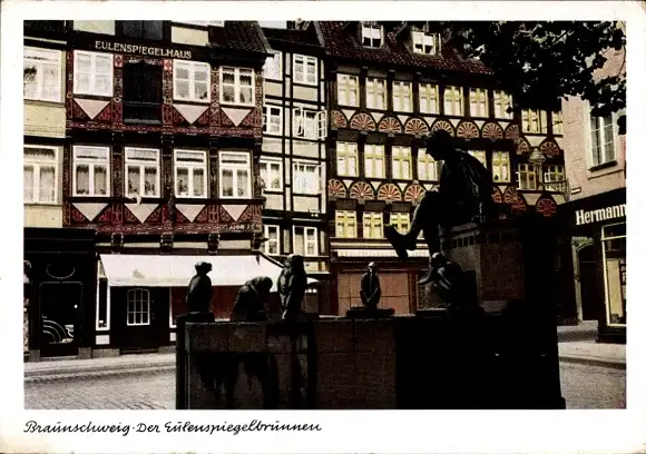 Ak Braunschweig in Niedersachsen, Eulenspiegelbrunnen