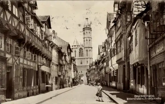 Ak Braunschweig in Niedersachsen, Weberstraße, Andreaskirche