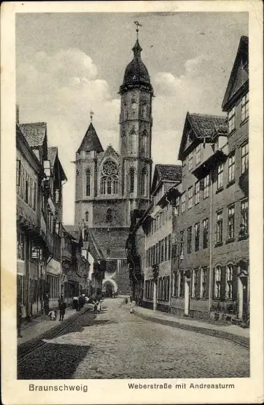 Ak Braunschweig in Niedersachsen, Weberstraße, Andreasturm