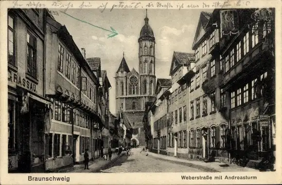 Ak Braunschweig in Niedersachsen, Weberstraße mit Andreasturm