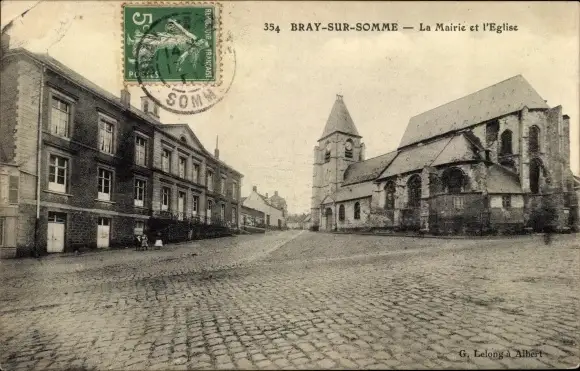 Ak Bray-sur-Somme, Rathaus und Kirche
