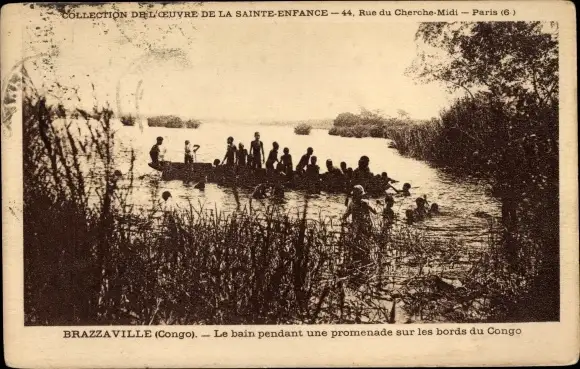 Ak Brazzaville Congo Français, Baden während eines Spaziergangs am Ufer des Kongo