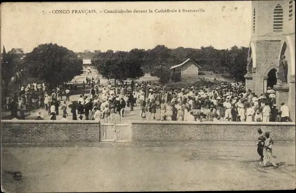 Ak Brazzaville Franz. Kongo, Conciliabules devant la Cathedrale