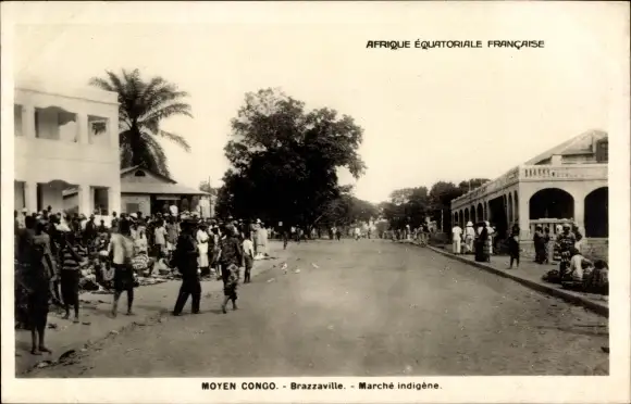 Ak Brazzaville Französisch-Kongo, Indigener Markt