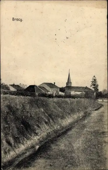 Ak Brecy Aisne, Straßenpartie mit Blick zum Ort, Kirche, Feld, Häuser
