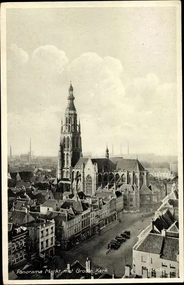 Ak Breda Nordbrabant Niederlande, Panorama Markt met Groote Kerk