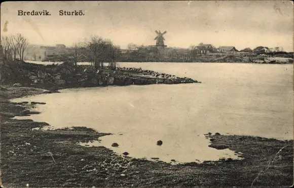 Ak Bredavik Schweden, Sturkö, Windmühle, See