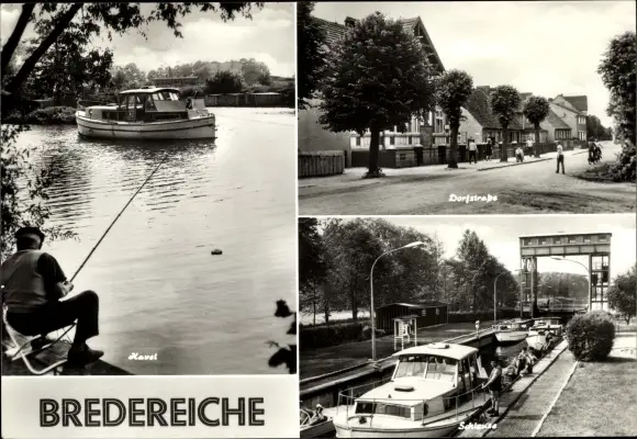 Ak Bredereiche Fürstenberg an der Havel, Angler an der Havel, Dorfstraße, Schleuse