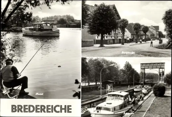 Ak Bredereiche Fürstenberg an der Havel, Angler an der Havel, Dorfstraße, Schleuse