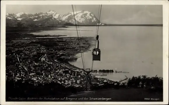 Ak Bregenz am Bodensee Vorarlberg, Gesamtansicht, Pfänderbahn