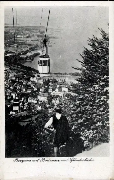 Ak Bregenz am Bodensee Vorarlberg, Gesamtansicht, Pfänderbahn