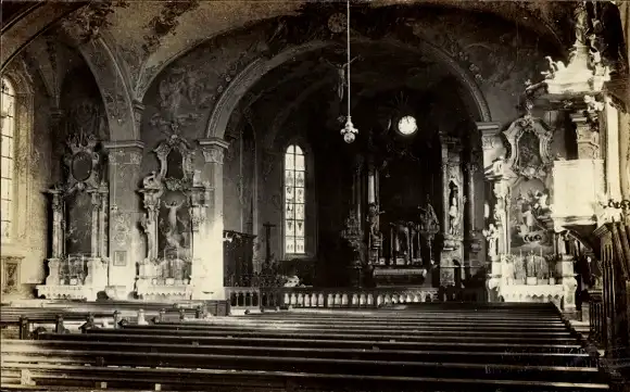 Ak Bregenz am Bodensee Vorarlberg, Stadtpfarrkirche, Innenansicht