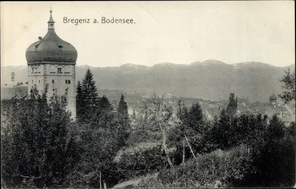 Ak Bregenz am Bodensee Vorarlberg, Teilansicht, Turm