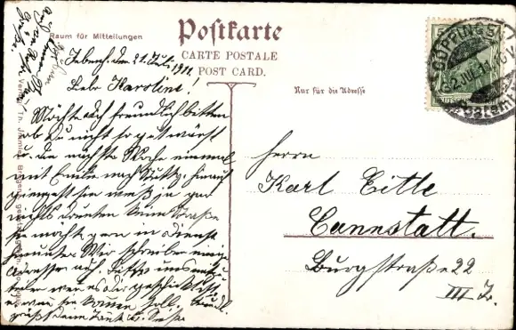 Zustand, siehe Scan, gelaufen, 1911 - ca 14 cm X 9 cm