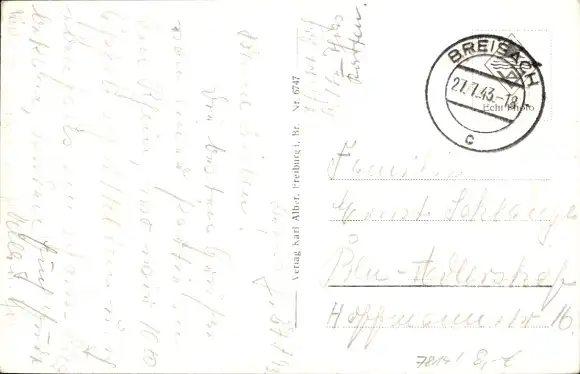 Zustand, siehe Scan, gelaufen, 1943 - ca 14 cm X 9 cm